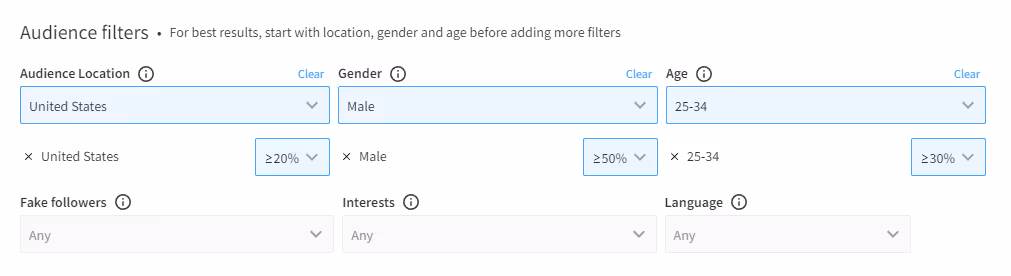 Uma dica: aplique os filtros progressivamente e não todos de uma vez para evitar potencialmente perder influencers que seriam uma boa escolha.