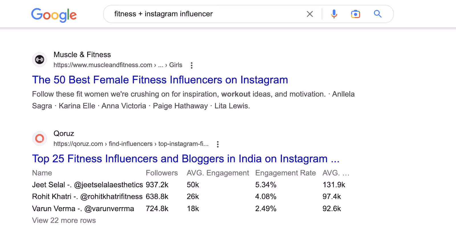 Escreva “a sua indústria + Instagram influencer” no Google, e obterá uma variedade de artigos falando sobre criadores de conteúdo de topo no Instagram, no seu mercado.