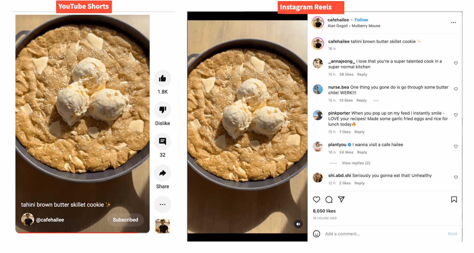 Muitos criadores de conteúdo publicam os seus vídeos do TikTok no Instagram e shorts do YouTube, como a Hailee Catalano: