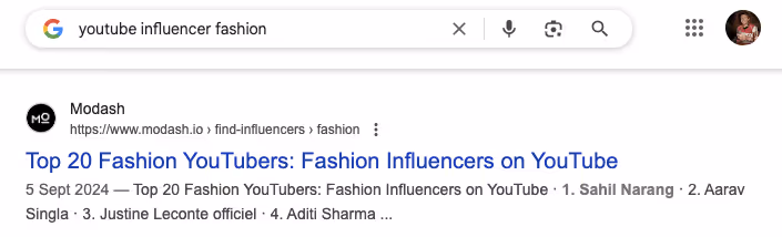 The simplest way to find YouTube influencers is to head to Google and search for youtube influencer [your industry].