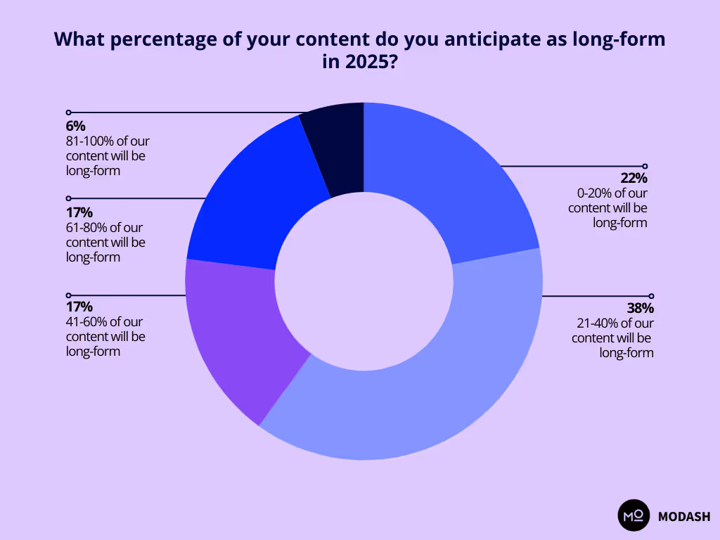 Itâs also worth noting that YouTube videos are generally longer than those on other platforms. According to our own research, over two-thirds of influencer marketers believe long-form content will compete on performance with short-form in 2025, while the average influencer marketer expects long-form pieces to make up 40% of their total content this year.