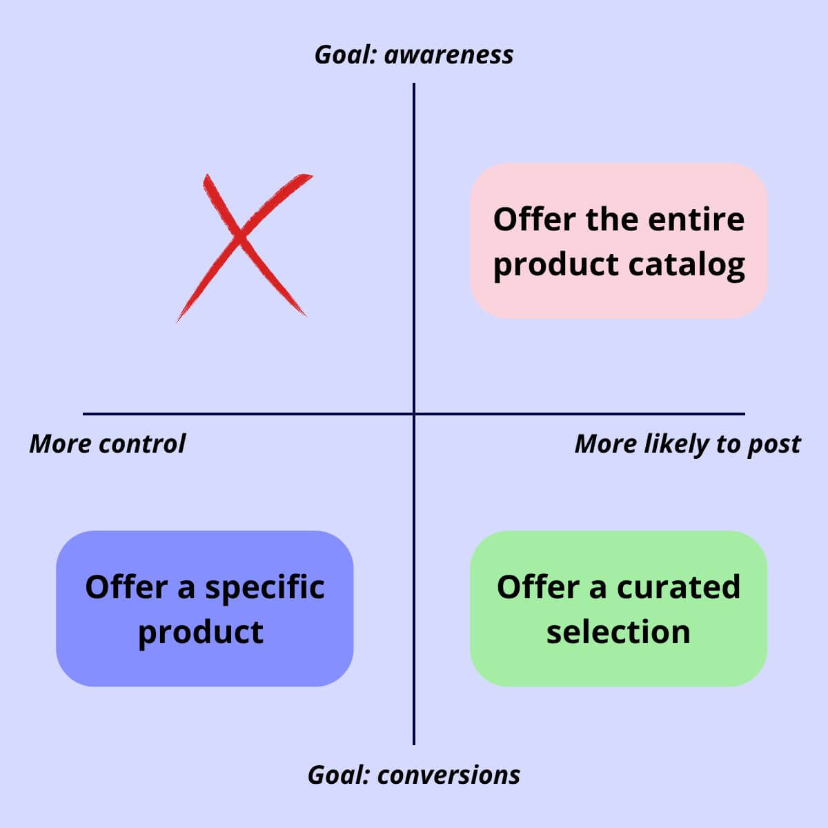 Uma forma de aumentar o número de influenciadores que aceitam os seus produtos (e publicam) é dar-lhes uma escolha mais ampla do seu catálogo. Aqui, pode adotar uma de três abordagens: