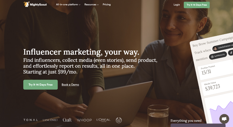 👎 Possíveis desvantagens: O MightyScout não suporta pagamentos a influencers, então será necessária uma ferramenta adicional para isso.