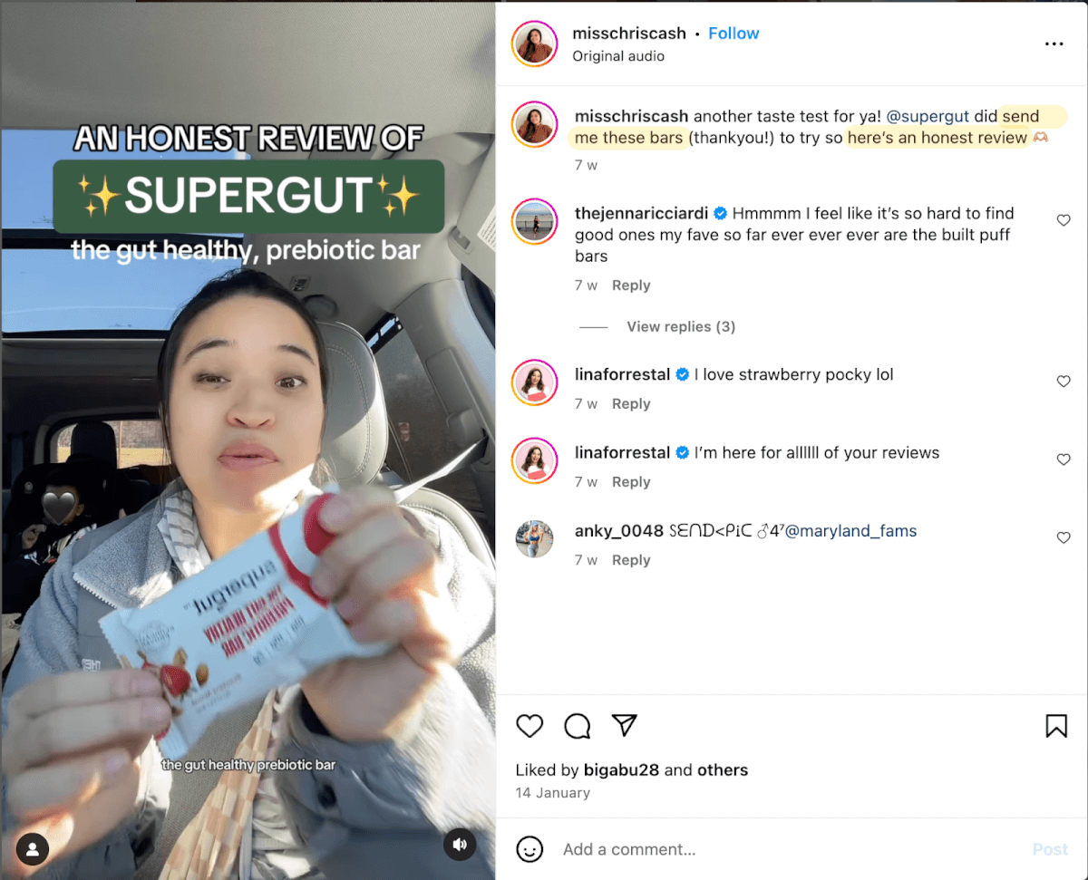 Embora 141 criadores tenham publicado sobre a Supergut, um total de 231 peças de conteúdo de influenciadores foram ao ar. Isso incluiu: