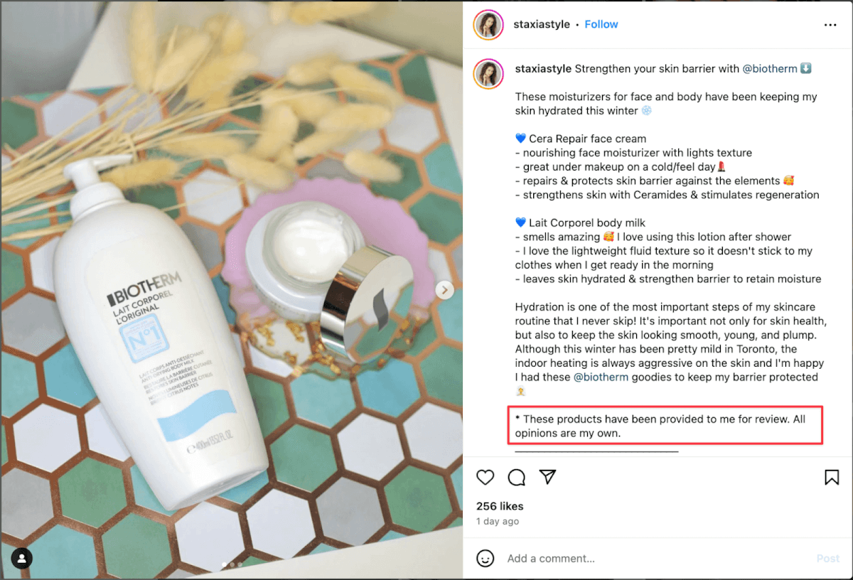 Biotherm é uma empresa de cuidados com a pele pertencente à L'Oréal. Eles praticam gifting com uma variedade de influenciadores de skincare de diferentes regiões. (Vi publicações de influenciadores na Espanha, Alemanha, Canadá e outros.)