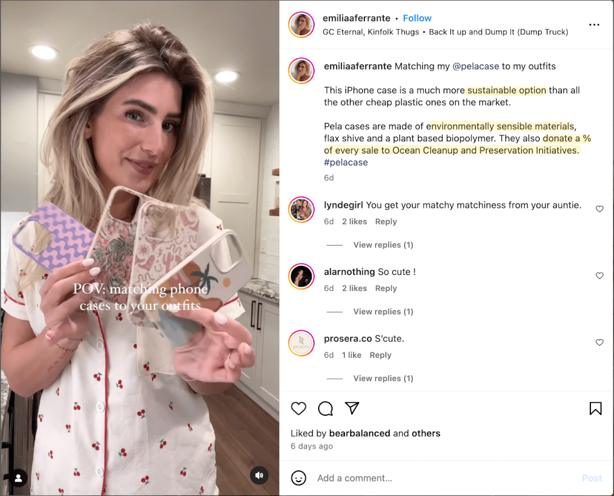 Pela Case vende capas de telefone compostáveis. No episódio do podcast Influencer Marketing Blueprint, o cofundador e CEO, Matt Bertulli, descreveu em detalhes como sua empresa usa o product seeding como parte de sua estratégia de marketing de influenciadores.
